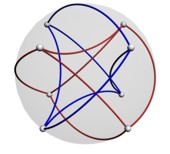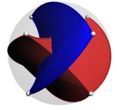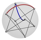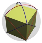 Θέτουμε τα οκτώ σημεία των κορυφών της σύνθεσης στην επιφάνεια της σφαίρας και καμπυλώνουμε τις διαγώνιες ακμές, ώστε τα σημεία τους να τρέχουν στην επιφάνεια της σφαίρας.