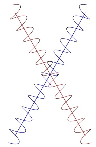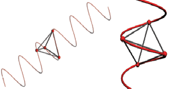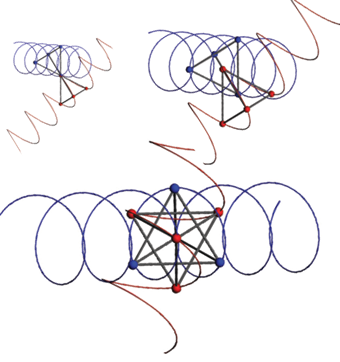 Οι τέσσερις κορυφές μιας συμμετρικής τετραεδρικής διάταξης, όταν αυτή μετακινείται περιστρεφόμενη, αντιστοιχούν απόλυτα με την ανάπτυξη μιας σπείρας με κανονική συχνότητα και κανονικό μήκος κύματος.
