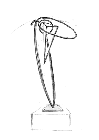 Η βάση του γλυπτού βρίσκεται στο κέντρο του και αναπτύσσεται προς όλες τις κατευθύνσεις. Οι δύο άξονες είναι δύο επιμηκυμμένα τετράεδρα.